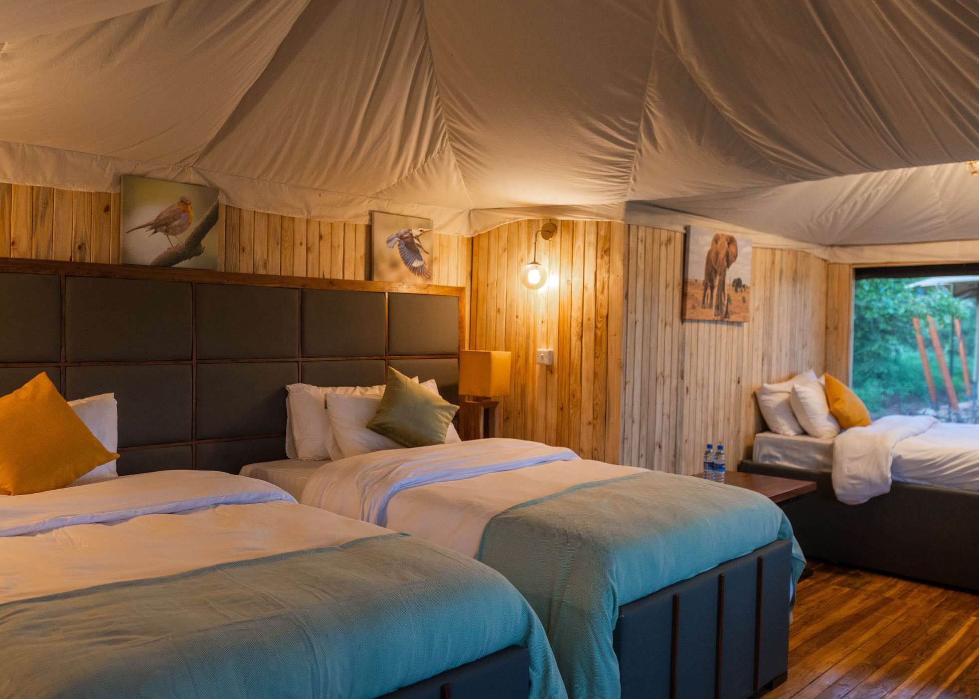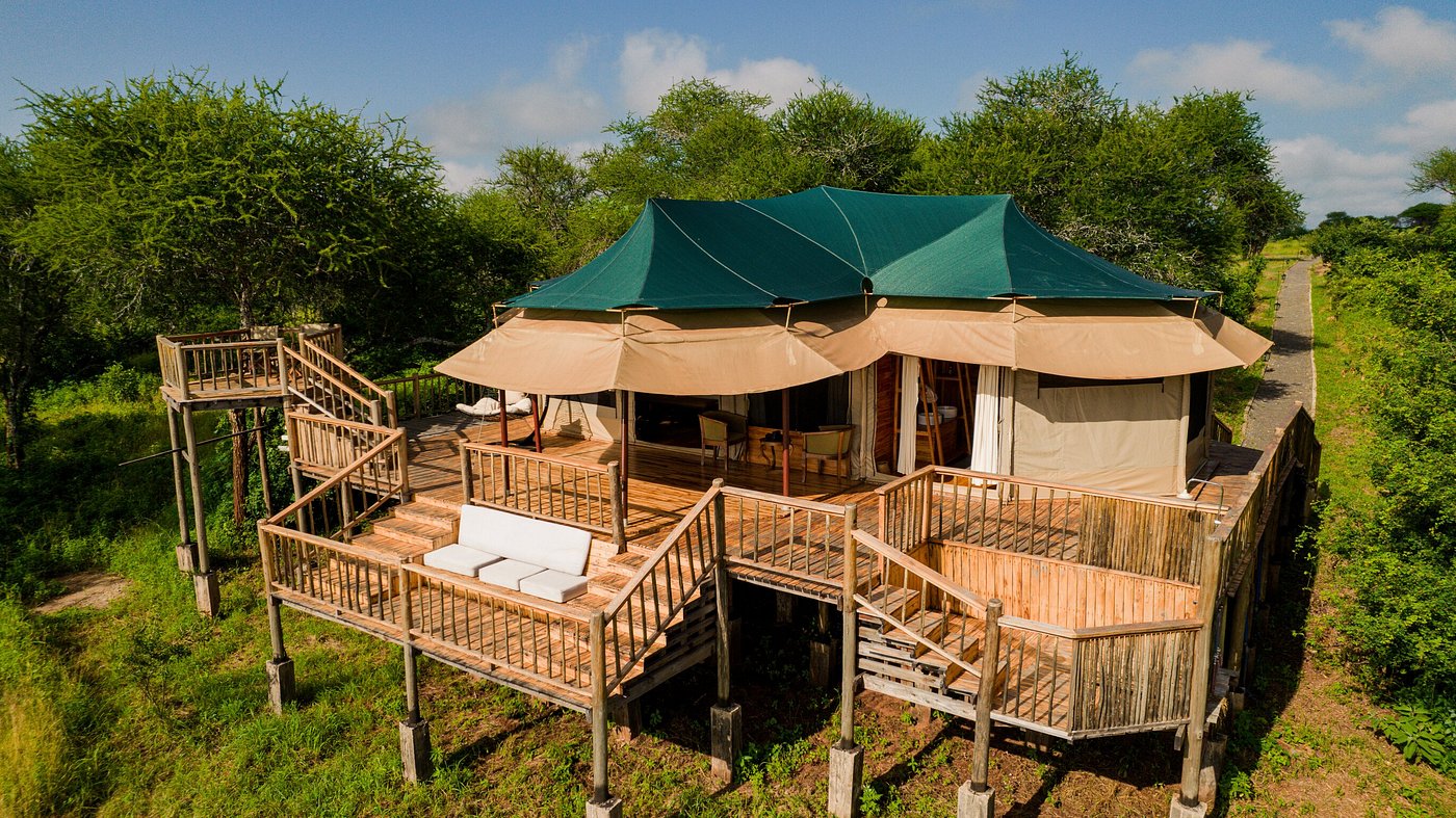 Ang’ata Tarangire Camp lies in the heart of Tarangire National Park overlooking the Tarangire River. It offers 8 beautifully designed and spacious tents (one of which is an interconnected family tent), equipped with fluffy beds, a small sitting area, a cosy outside terrace, and a luxury appointed ensuite bathroom. A public lounge tent allows you to relax before a sumptuous dinner in the restaurant, after which the Bush TV (a campfire) awaits to end your night in style. An ideal place to stay in luxury while still living that true camping experience!