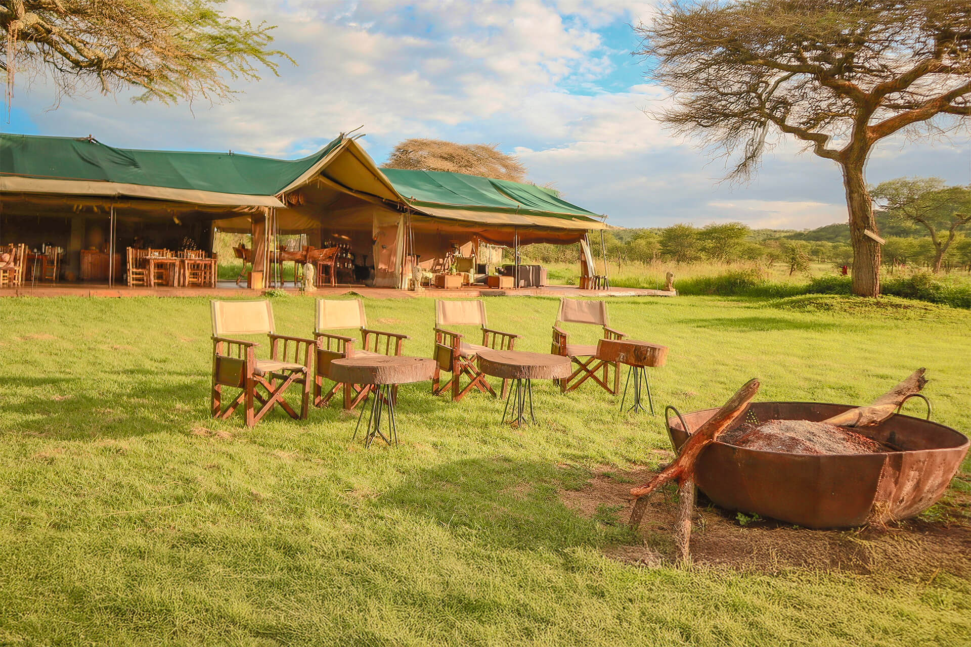 Asanja Moru is the name of a luxury bush camp between some rocky islands known as Moru Kopjes in the eastern part of Serengeti National Park. The camp boasts 8 ensuite tents (among which one spacious family tent) all slightly differently decorated in a combination of whitewashed and dark woods and natural fabrics, with comfy furniture and an outside terrace with a (of course!) a view. The Moru Kopjes area is well-known as the place where the migrating herds pass by on their way down south, with Gong Rock (a slab of rock with a metallic sound that you can hit like a drum) nearby and the salty Lake Magadi with its flamingos to the east. A lovely place to rest your head for the night!