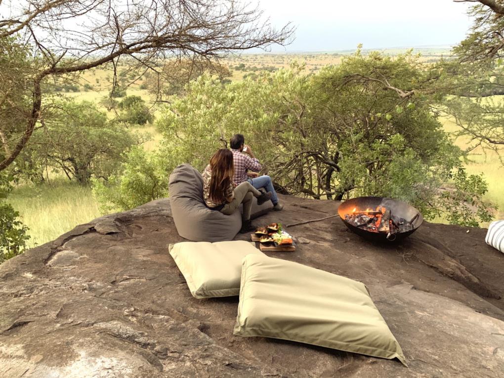 Everything here is designed for you to marvel at the view and the wildebeest and zebra herds that frequently parade by. An infinity pool is set within a rocky natural cave, where it allows you to savor your drink while watching the wildlife stroll by. The tents afford you multiple views: from the comfort of your bed, from the swing bed on your terrace, and from the romantic copper bathtub that is perched in front of the glass windows that open up to the vast plains. Additionally, the two honeymoon/family tents also have their own plunge pools which also allow for a breathtaking view. The food served is simply mouthwatering, and the service is impeccable. A special place for your memorable Great Migration adventure!